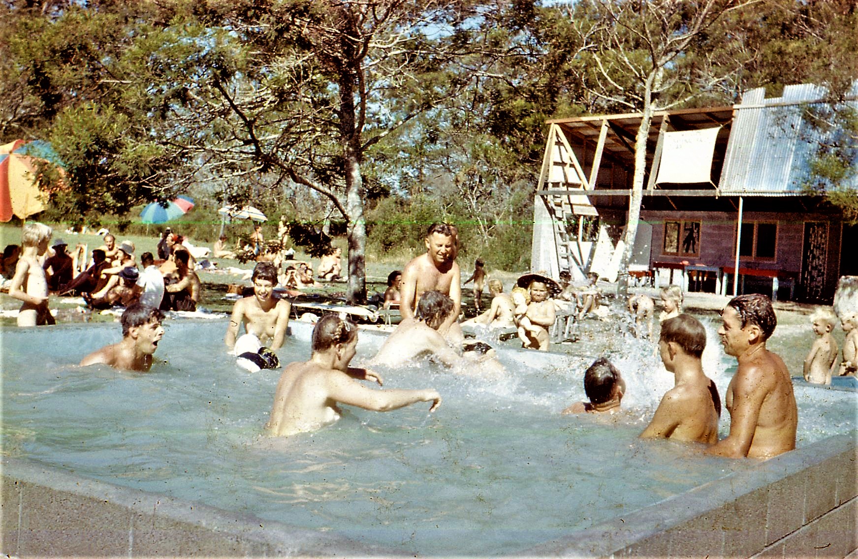 In the interim a small concrete block pool was established : about where the sauna now stands and this was used for a few seasons principally for the 1960 NZNF rally which was held on the grounds and from this venture, to which many club members came from around the country, we were well on the way with funds to clear some of the clubs’ mortgage and look toward a  more prosperous future.